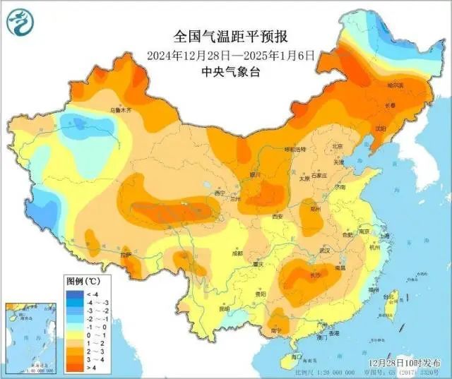 所以,新年开篇的天气关键词除了干,还有暖。2025年开年气温距平图上,可能又将是一片暖色调。